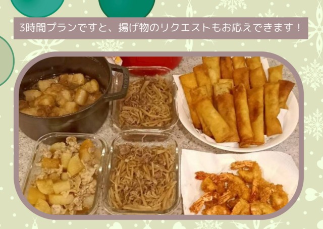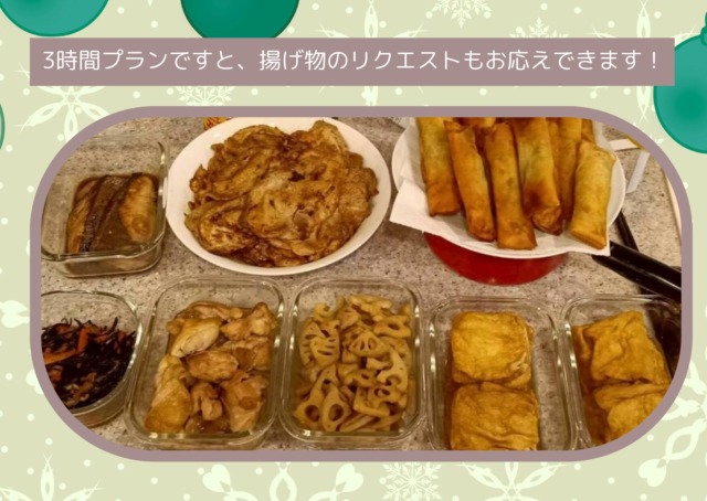 慣れないお宅では、ご希望通りの品数が作れないこともありますので予めご了承くださいませ。