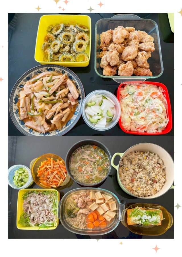 こちらのお宅様は、汁物のご用意はご自身でなさるため、主菜、副菜を複数作ります。